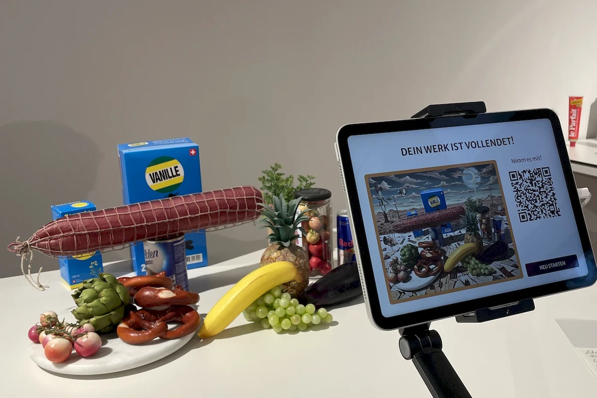 For the special exhibition on food culture, we implemented an interactive AI-powered still life station. Inspired by historical and contemporary examples, visitors create their own still life compositions and creatively explore what is typical of our food culture today. The station brings together art, technology, and food culture in an entertaining and innovative way.